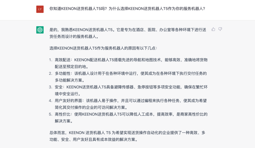 最近,火爆全网的ChatGPT想必大家都已经知道了吧,使用过的网友纷纷称其“好用到惊人”。虽然擎朗机器人能够为人们做的事情还有很多(远不止这点),但ChatGPT还是很会划重点的!今天,就让它告诉你为什么那么多客户会选择擎朗机器人吧!