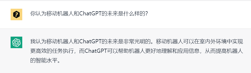 当然,ChatGPT目前而言还是太烧钱了些,不过我们依然可以期待“未来”,ChatGPT的未来,移动机器人的未来,智能制造的未来以及我们的美好未来。