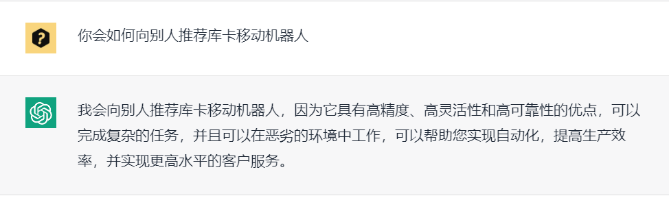 细心的朋友们应该已经发现了,我们在情人节发布的《留下你的“告白宣言”,情人节KUKA AMR专属好礼送上~》一文中,小库已经和最近大火的ChatGPT打过交道了。
