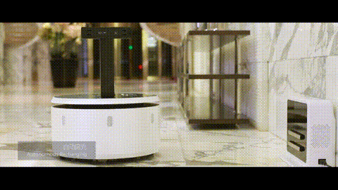 Hermes底盘的智能梯控4.0系统,突破了梯控设备在面临雨雪等恶劣天气和高层楼气压通信不定的难题,并匹配市面上90%的电梯品牌,可以在多楼层稳定运行。搭载了Hermes底盘,该消毒机器人即便在多楼层的酒店、医院等场景也能灵活行走,完成消毒工作。