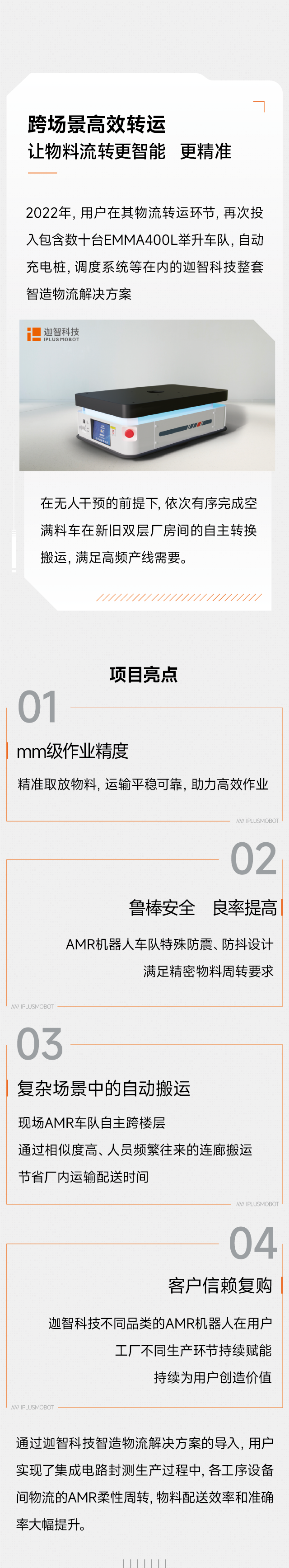 迦智科技(IPLUS MOBOT)是一家致力于用人工智能和机器人技术为智能制造和智慧生活提供室内外智能移动作业机器人产品与解决方案的高科技企业。
