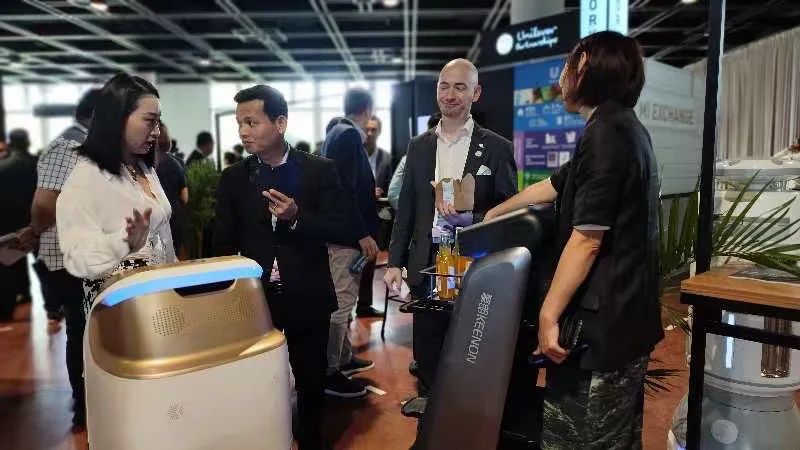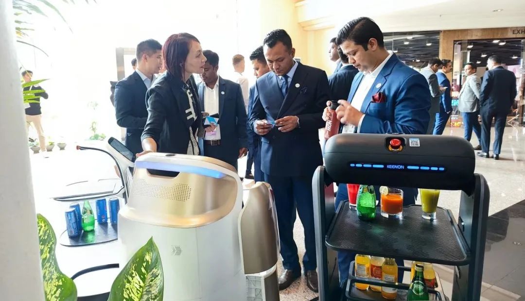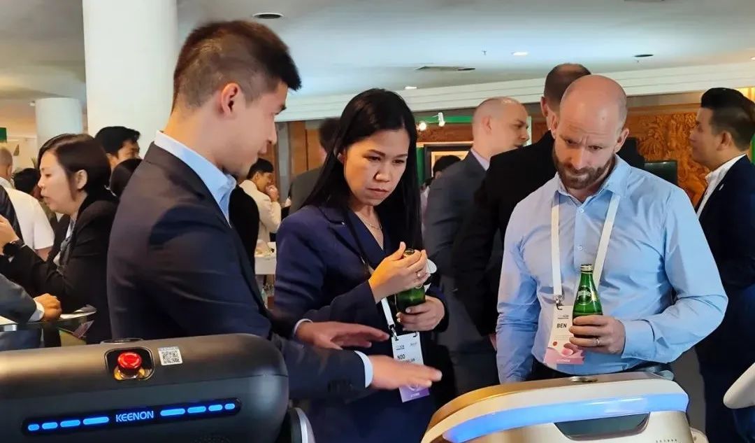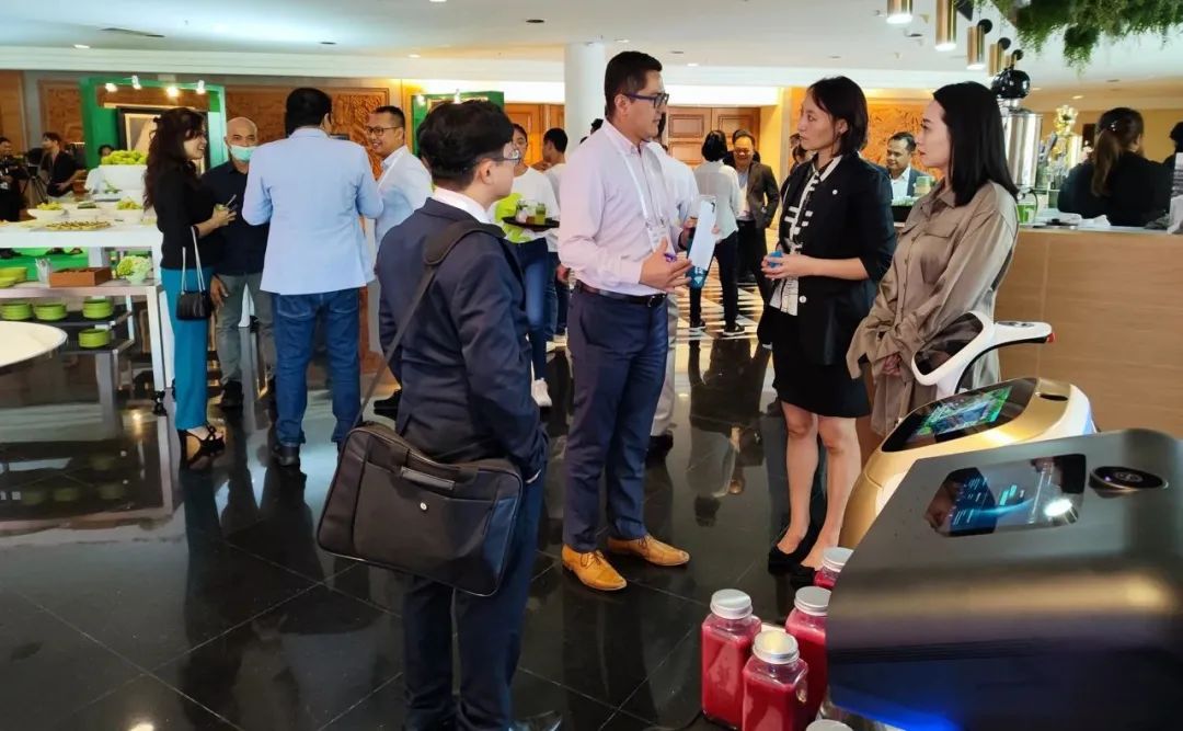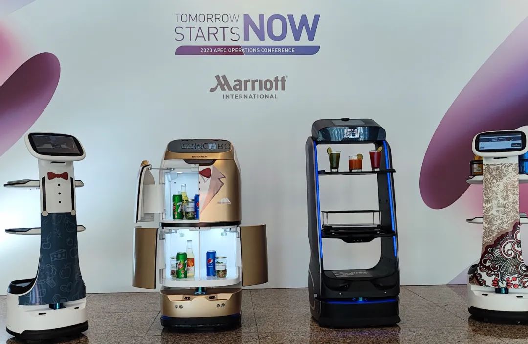 擎朗智能作为万豪集团在商用服务机器人领域的合作伙伴受邀参会。此次活动中展示的擎朗机器人包括送餐机器人和酒店机器人,提供了包含配送、揽客、导引、回盘等在内的全链路智能解决方案,涵盖了酒店服务行业典型的场景需求,也让与会嘉宾零距离感受到了中国企业带来的先进智能智造风采。