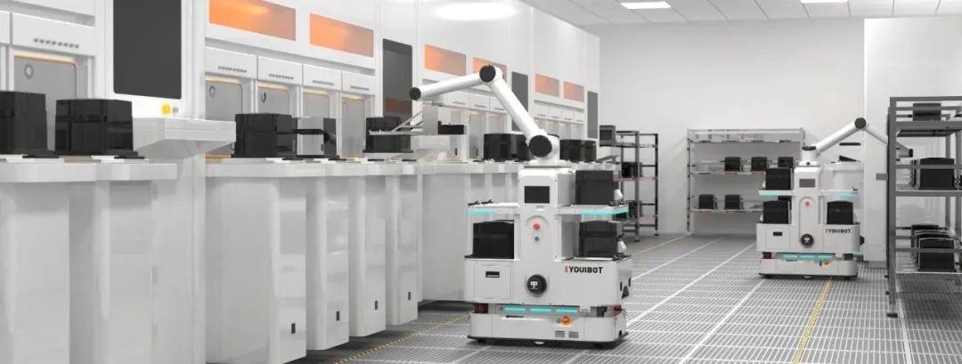 在移动操作机器人基础上,优艾智合应用YOUI Pilot导航系统、YOUI Fleet机器人调度系统,及YOUI TMS场内物流管理系统,实现晶圆盒在机台、电子料架、存储仓等不同工序间的自动转运,同时打通全生产周期的物质流与信息流,保障物料数据全流程可追溯。