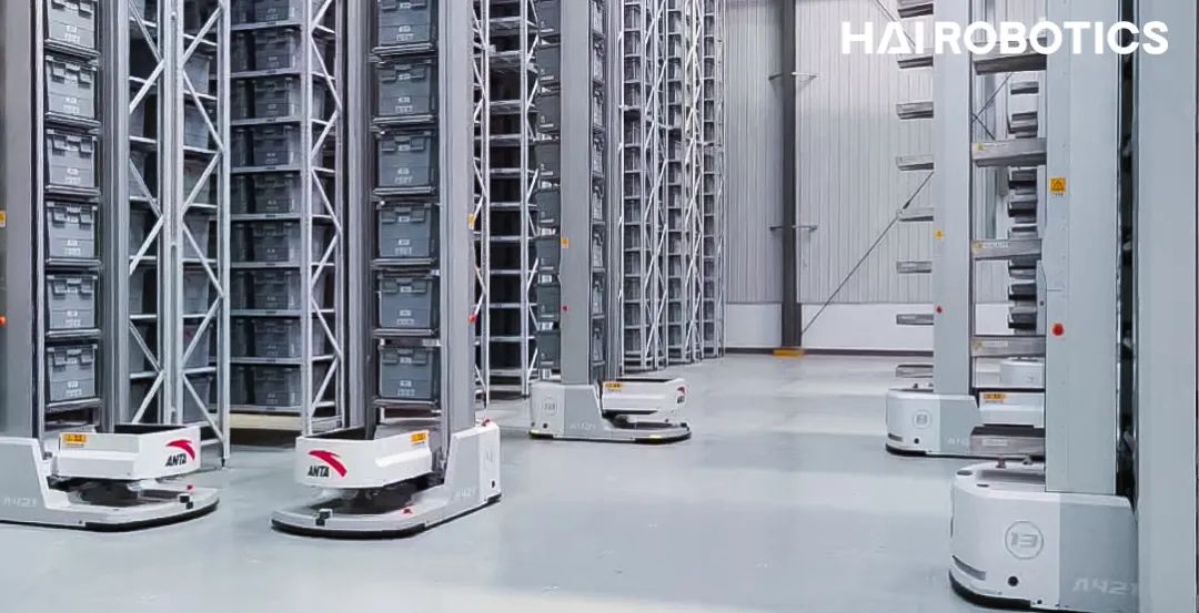在安踏佛山仓,海柔配备了30台A42T、HaiPort装卸机、播种墙、输送线等设备,取货高度可达8米,大大提升了空间利用率;在郑州仓,海柔提供了47台A42T,HaiPort装卸机等,两个项目都实现出入库效率提升2倍以上。