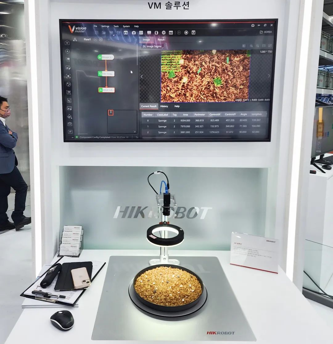 本次展台共分为两大核心展示区,品类包括机器视觉和移动机器人。在这里,能看到机器视觉在高精度生产及检测场景中的应用,也能直观感受到智慧内物流如何多车协同。海康机器人向全球客户展示了智慧工厂解决方案。