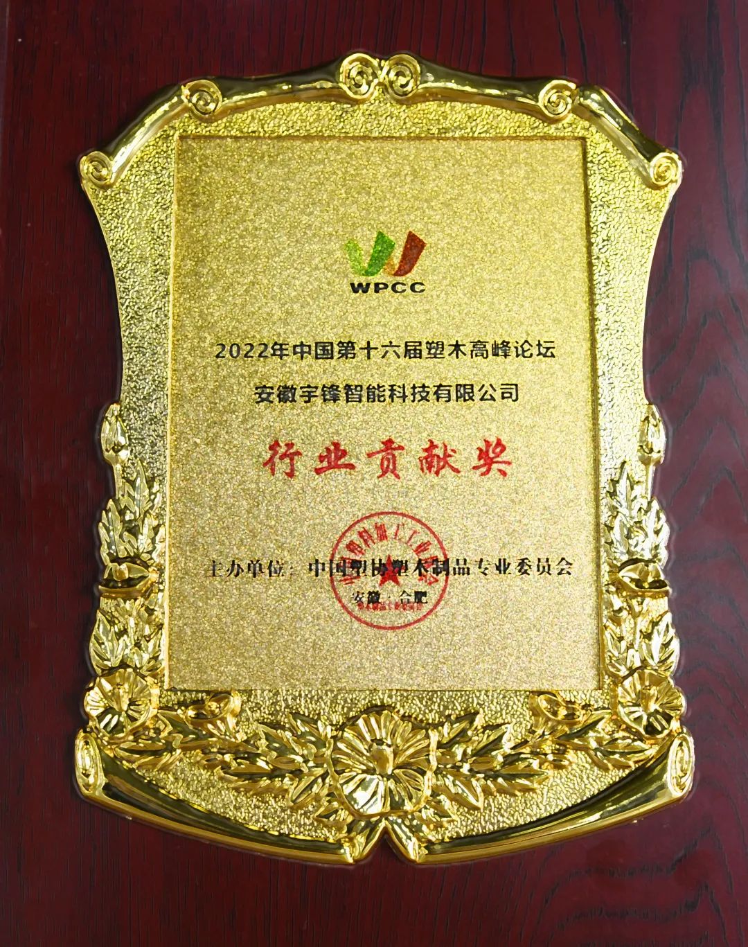 安徽宇锋智能科技有限公司荣获木塑“行业贡献奖”。