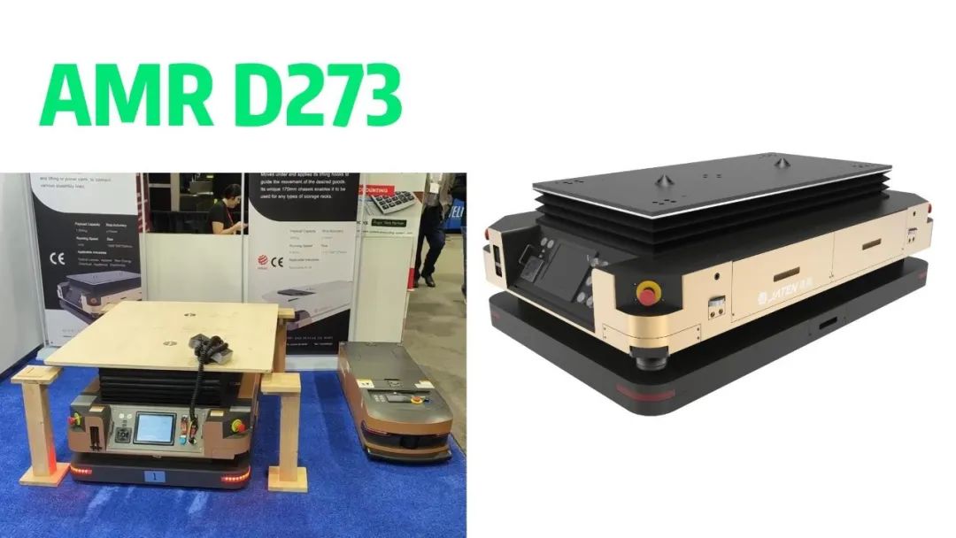 本次展品型号为D273,这款双驱双向的AMR,负载重量为1000KG,举升高度为100mm,连续定位精度可达到±5mm(行业一般为±10mm),可原地旋转、平移,主要用于锂电池PACK生产线的工位转移。