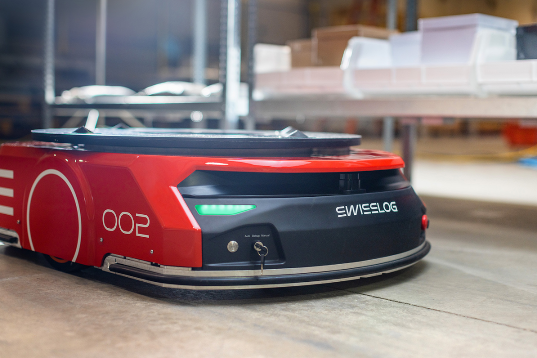 展会现场展示的是专为Swisslog定制的红色车型,此款产品可根据客户需求,进行批量定制化,也可作为基础底盘加装不同上装模块,以满足实际场景需求。