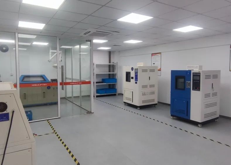 环境试验室配备了盐雾试验箱、高低温交变试验箱、紫外线老化试验箱及臭氧老化试验箱