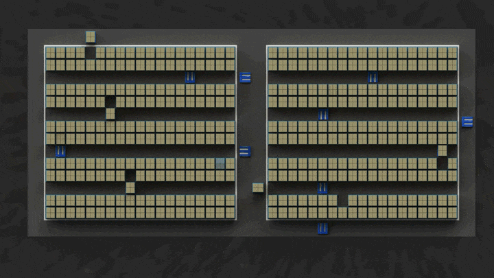 托盘机器人主动式伸叉设计,可大幅缩减库位左右间距,具有存储密度大、存储效率高的优势。同时,托盘机器人在保证安全行驶的情况下,自适应空间变动,保持作业流畅,灵活适应产线“准时达”配送。