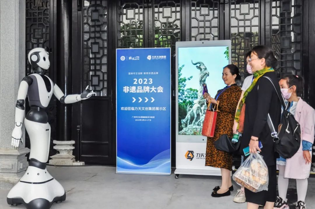 坚持守正创新,擦亮非遗品牌。3月24日,由文化和旅游部与广东省人民政府共同主办的“2023非遗品牌大会”于广州文化馆盛大开幕。力天文创集团携手达闼机器人在翰墨园设立“非遗+科技”展示区,带来智能人形机器人、智能数字人、数字新媒体、国潮新文创等成果案例,于精巧秀丽的岭南园林中,献上一场科技与古典交相辉映的“非遗盛宴”。