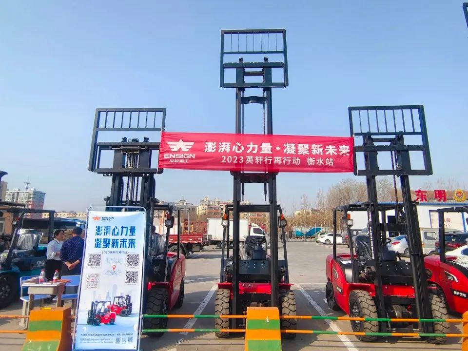 穴总愿与英轩叉车砥砺前行,英轩叉车也将全力支持旭一商贸开拓市场,厂商共同探讨当地工况、客户特点,敲定了衡水市场的品牌推广规划。三月中旬,英轩叉车的营销团队奔赴衡水,与穴总带领的团队联合打响“澎湃心力量,凝聚新未来”2023年英轩行推广活动的第一站——衡水站。