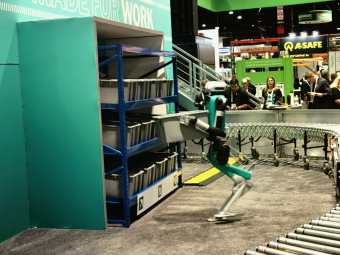 Agility Robotics 的展台在展会的大部分时间里都挤满了人,这是有充分理由的。您并不是每天都有机会看到双足机器人在行动。根据 Agility 的说法,Digit 的演示基于真实的客户用例,并且在整个四天的展会中都在运行。Digit 是 ProMat 最佳新创新奖的获得者。
