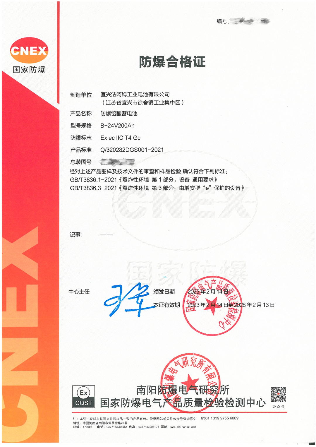 FAAMtechnical team has many years of experience in manufacturing explosion-proof batteries, according to the customer use place and explosion-proof grade requirements of the production of 1 zone or 2 zone explosion-proof batteries, and provide the national recognized explosion-proof certificate, if necessary, welcome to consult~