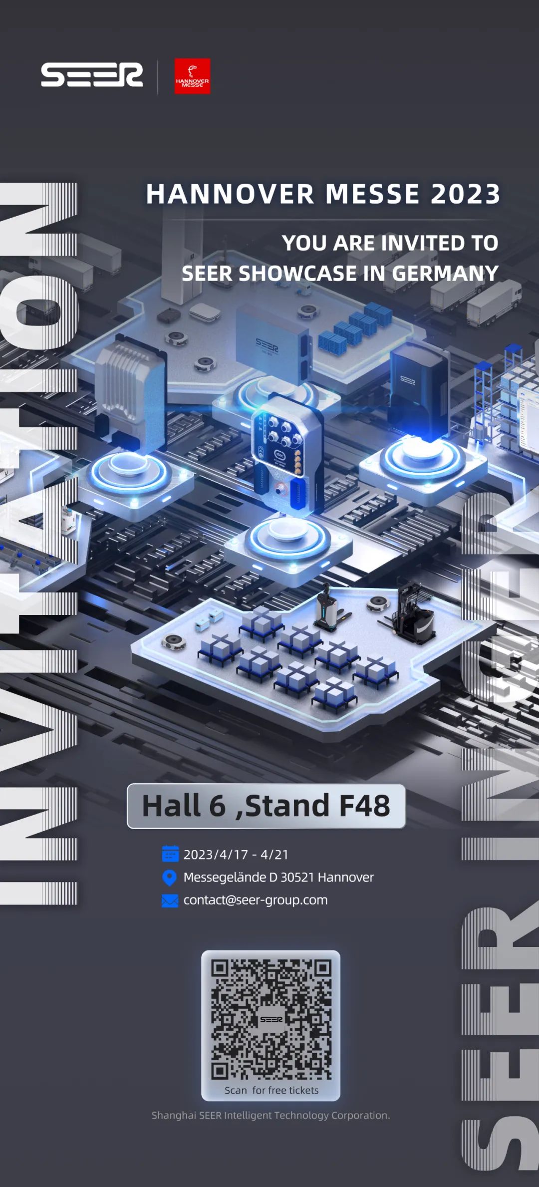 4 月 17-21 日,全球 AMR 控制器引领者仙工智能将以「Build your own AMR within days」为主题首次亮相德国 HANNOVER MESSE 2023 展会,位于Hall 6,F48 展位。