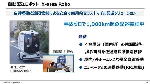 在户外活动的机器人包括自动送货机器人“X-area Robo ”。该机器人通过同时连接四个单元进行远程监控和操作,并早在 2021 年 11 月至 2021 年 12 月在“藤泽可持续智能城镇”(神奈川县藤泽市)进行了配送服务示范实验。