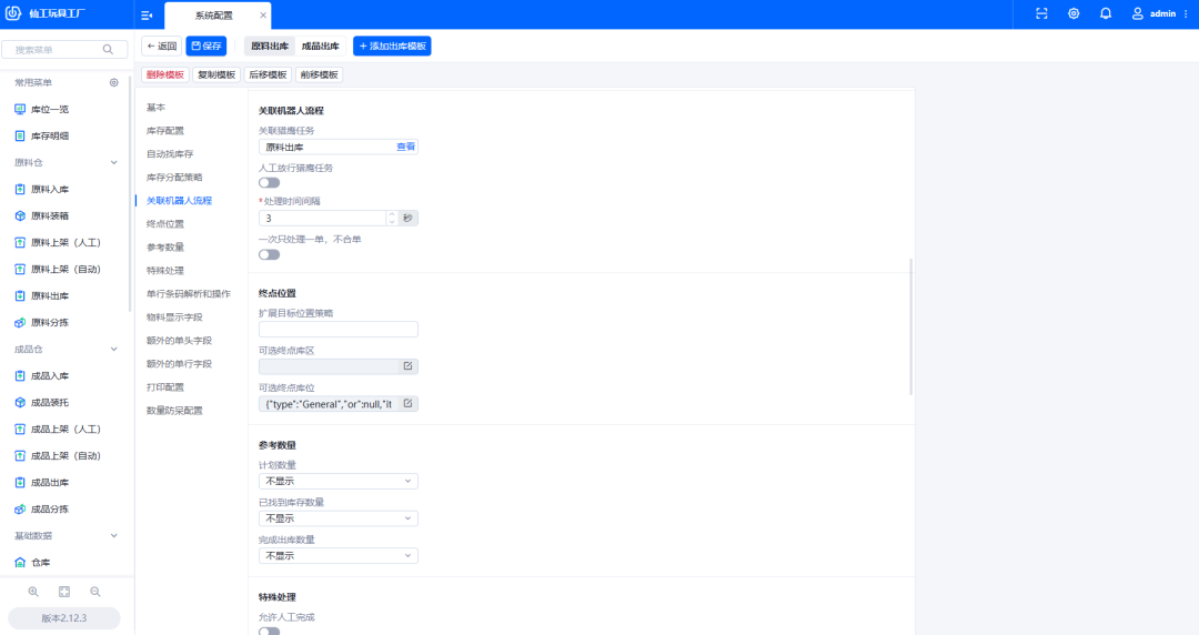 基于业务的多样性,生产制造场景下的出库也很多样,目前 MWMS 并不能直接适配所有仓配方式,但 MWMS 拥有可视化流程定义和脚本二次开发的能力,定制化更开放。
