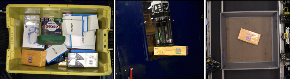 从左到右:来自亚马逊 ARMBench 数据集的拣选图像、传输图像和放置图像。|来源:亚马逊