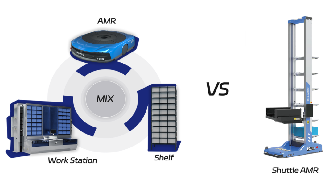 相较于传统料箱机器人,MIX货到人解决方案在存储面积、可兼容的商品尺寸与存储方式、可承载的商品重量、AMR投资回报比等各方面均具备更大优势。