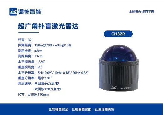2023年3月,镭神智能正式推出了低速无人驾驶的专业补盲激光雷达——“CH32R超广角补盲激光雷达”与“C32W大视场机械式激光雷达”,一经推出便受到了业内广泛关注。