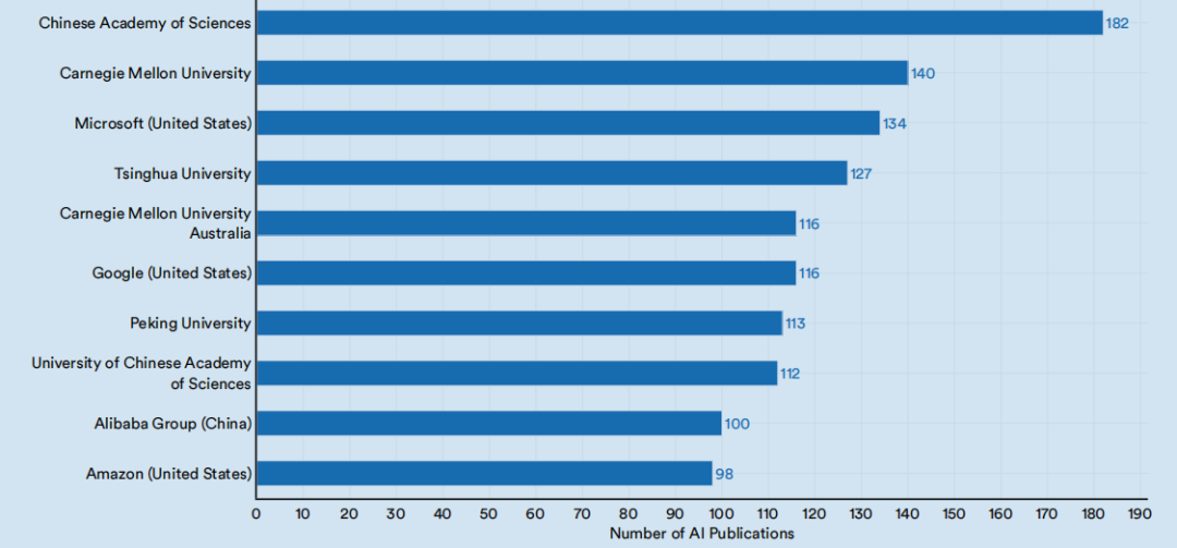 2021年按自然语言处理领域的人工智能出版物数量排名世界十大机构