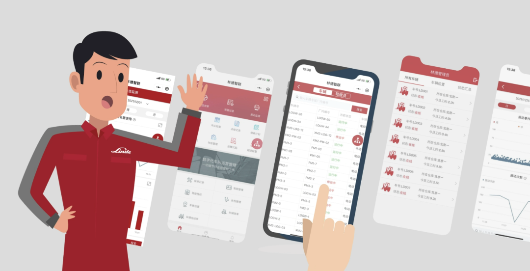 数据赋能:林德基于部署在工业车辆上的智能车载终端,通过物联网技术与专用安全云网络进行数据采集及传输,将人、设备、物流及网络完美连接,实时信息交互