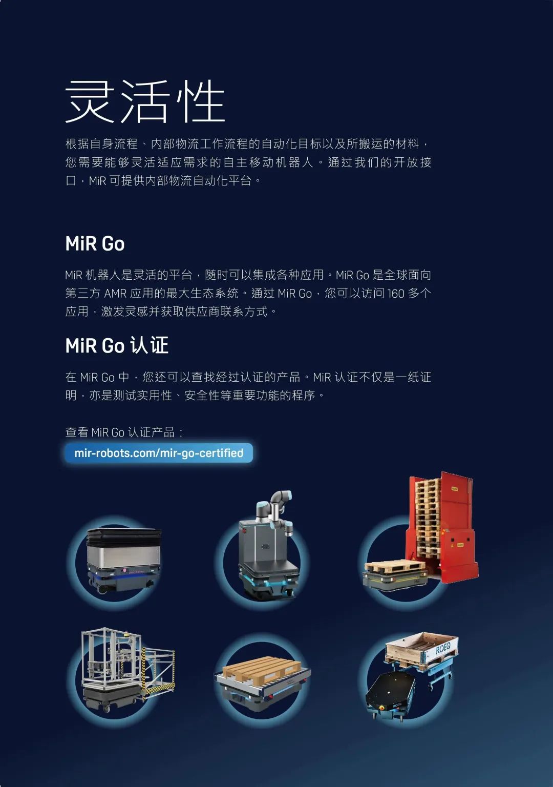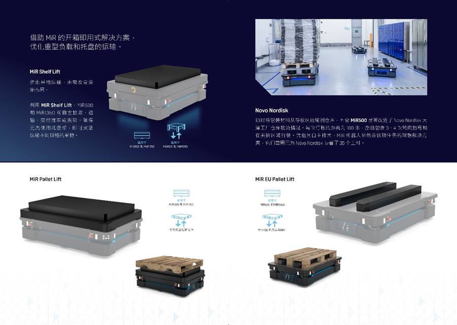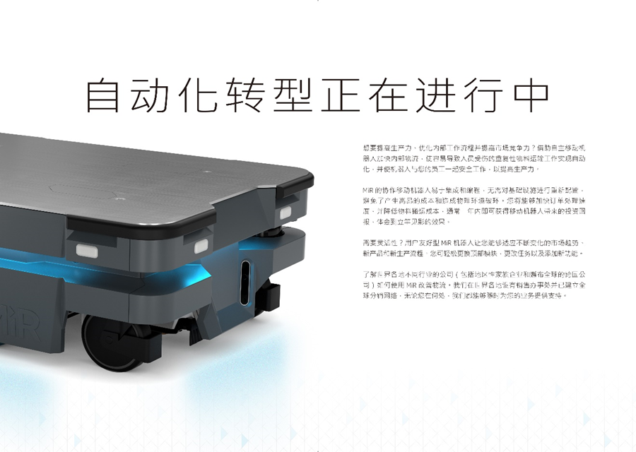 MiR致力于研发简单易用且灵活安全的机器人,帮助各类公司提高运营效率。MiR的自主机器人是新一代的先进移动机器人,具有投资回报快的特点,通常一年内就能收回成本。这些独特的协作机器人现已在工业及医疗保健行业大放异彩,帮助这些行业的制造商实现内部运输自动化。