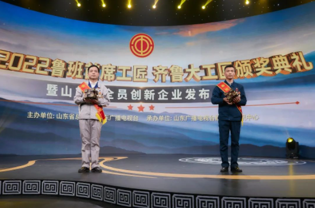 逐梦新征程,匠心向未来。4月20日晚,由山东省总工会、山东广播电视台联合举行的2022鲁班首席工匠、齐鲁大工匠颁奖典礼暨山东省全员创新企业发布仪式通过山东电视新闻频道、闪电新闻客户端、齐鲁工惠APP、山东工会微信视频号等媒体平台同步播出。全国劳动模范、国家级技能大师工作室领办人、山东临工维修电工、高级技师邱峰在仪式上被授予首届“鲁班首席工匠”荣誉称号。