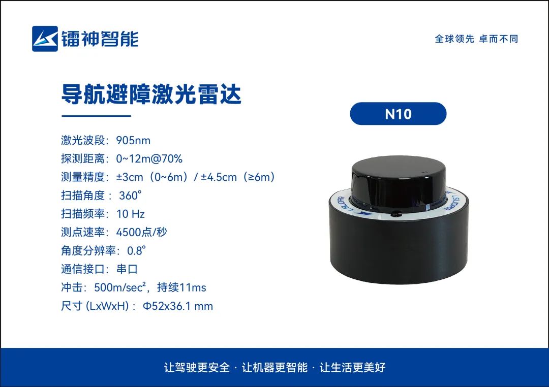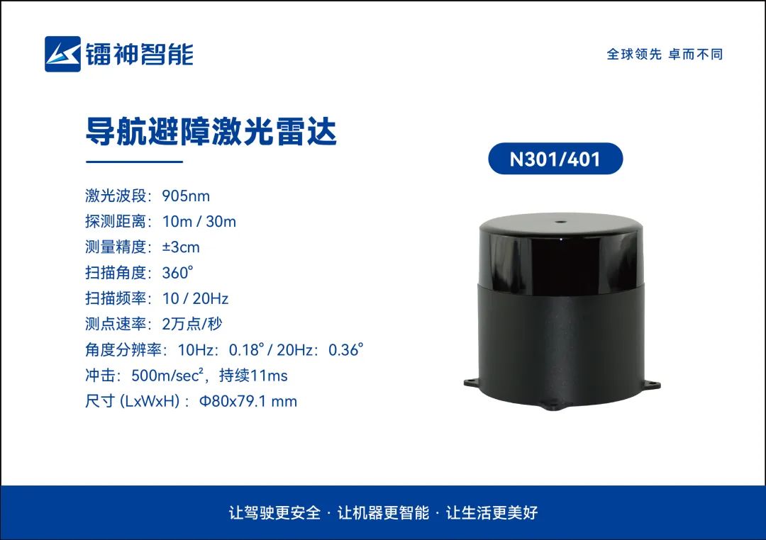 M10、N10探测距离在10m左右(@10%),可用于无人叉车叉尖处实现叉尖防护;N301与W系列的探测距离可达50m,而且W系列可设置防撞区域和智能报警的功能,实现无人叉车或其他可移动载体的防撞预警。