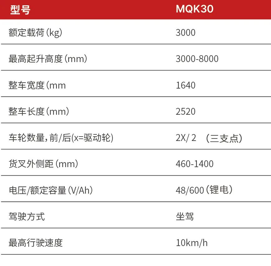 MiMA电动叉车作为全国领先的高端专业化叉车设计制造商,不断推出创新性的专业化电动叉车新产品。此次LogiMAT2023德国斯图加特物流展,MiMA米玛全球首发兼容人工驾驶和无人AGV本体的3.0吨全向平衡重叉车MQK30。MQK30全向平衡重叉车额定载荷3000kg,最大起升高度可至8米,可直行、侧行、斜行及原地回转,具备极高的行驶灵活性。同时采用全电转向,可完全适配无人化叉车的改制。