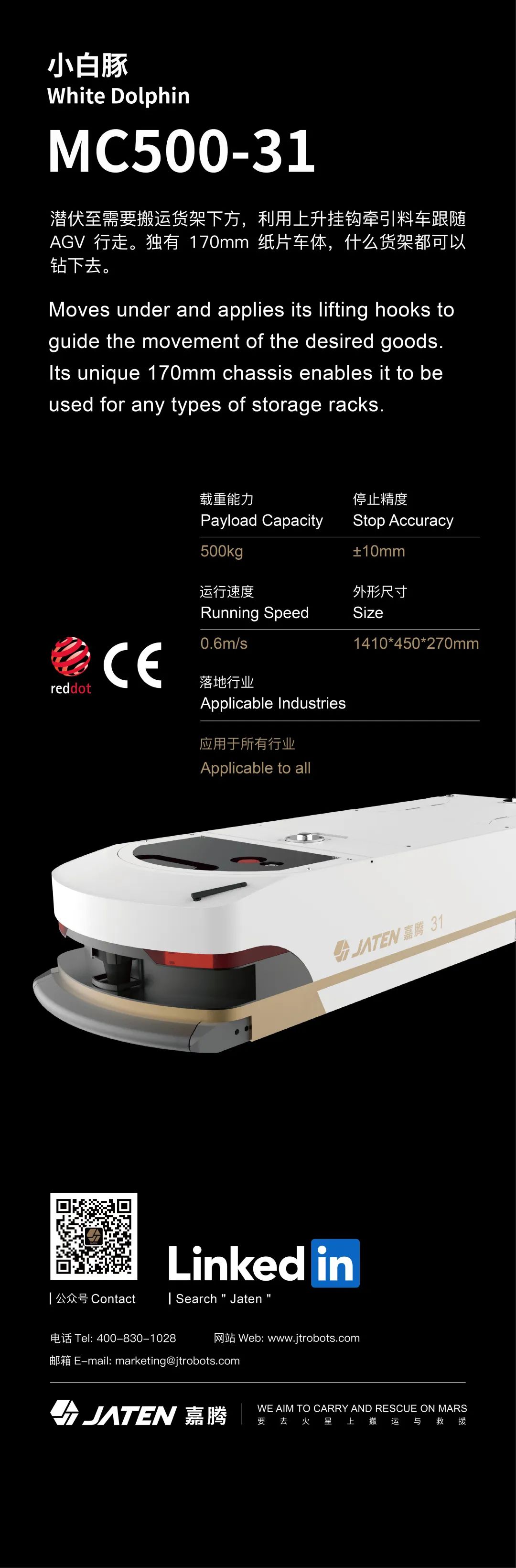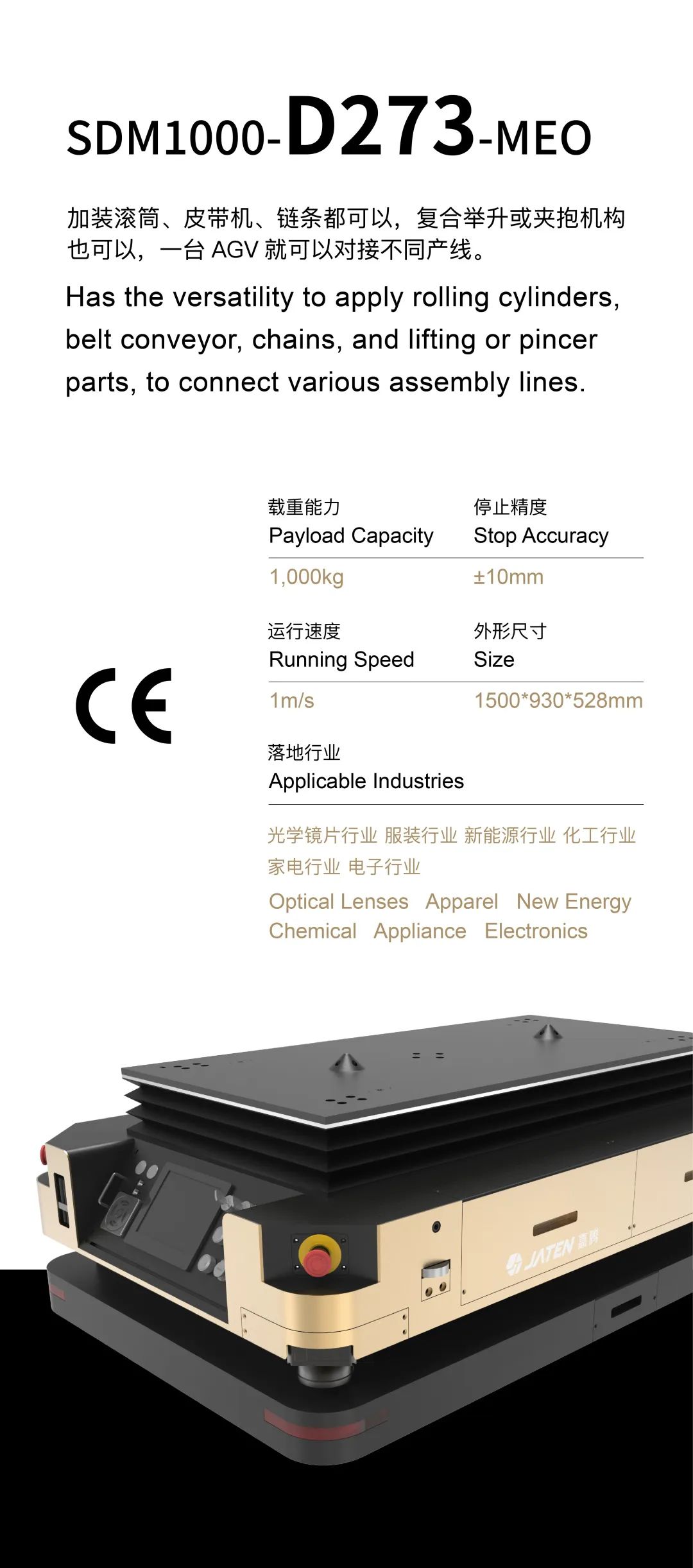 嘉腾是一家全球领先的AGV机器人与智能物流系统提供商,成立于2002年,至今为止,有超过60家的世界500强企业使用过嘉腾的产品。嘉腾产品广泛应用于汽车、电子、锂电池生产、化工、日用品及重型机械设备生产等各种行业。嘉腾AGV主要用于车间内的物料转运或者当作柔性生产线使用,或者用于自动化仓库的物料存储与搬运等环节。嘉腾秉承“彼此忠诚,相互成就”的经营理念,用坚持不懈、精益求精的工匠精神,不断发展壮大,解决了很多卡脖子问题,2020年嘉腾被评为国家级专精特新小巨人企业,且多次被CCTV等重要媒体作为先进典型报道!