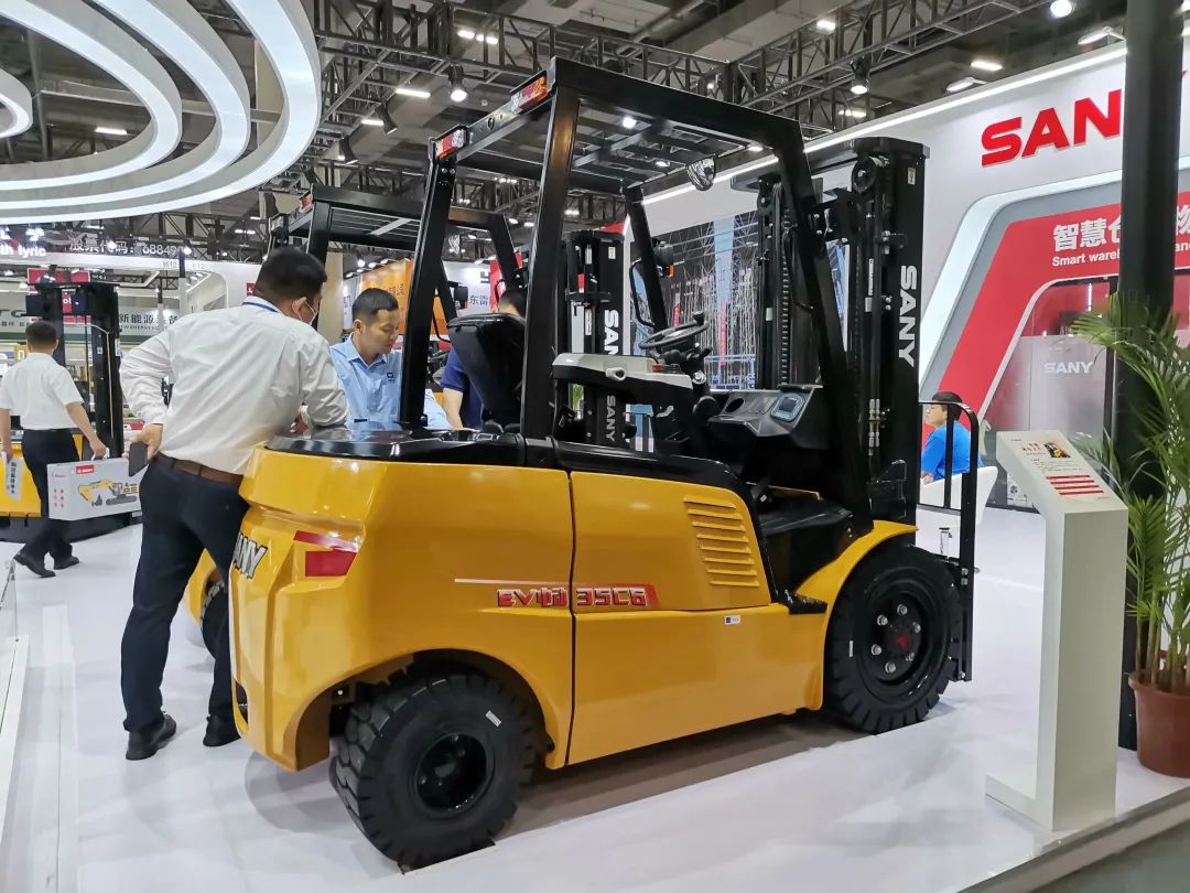 展品系列二:三一机器人的智能锂电叉车系列产品采用新能源汽车平台,核心部件采用IP67防护等级设计,可靠耐用,具有超长续航能力、充电速度快(30min充电80%,1hr充满)等优点,整车效率比传统电动叉车节能20%,成本节省30%,还具有行内首创的三电系统五年质保的极致服务。