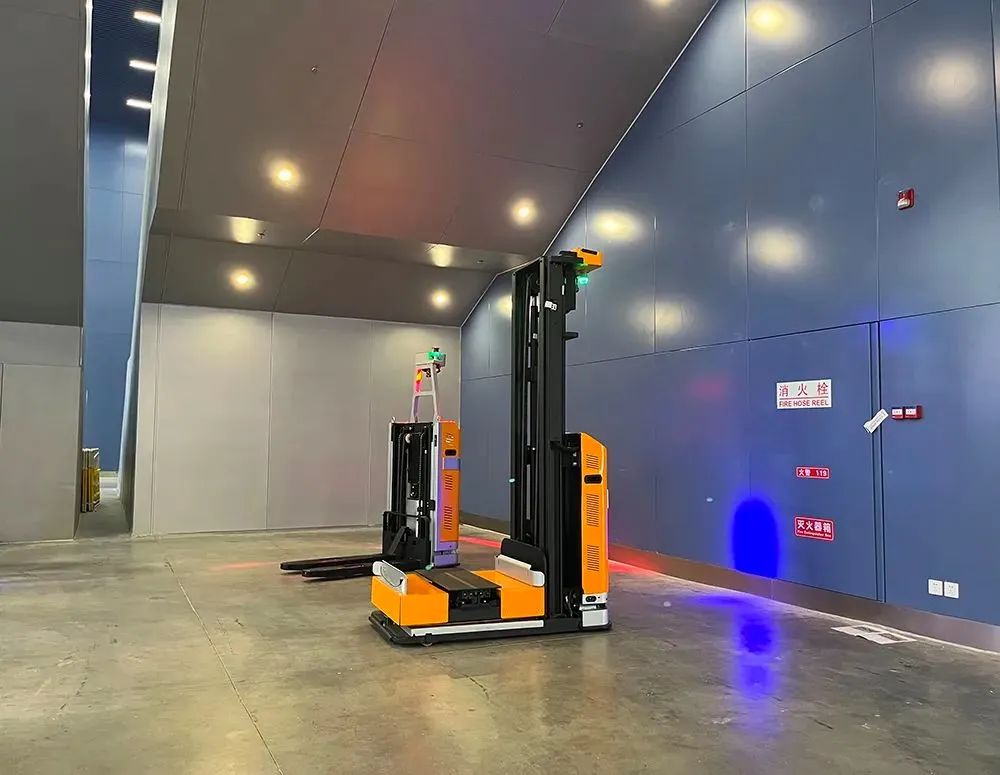 CDDM人上行三向叉,超高起升,窄通道通行,可定制磁导航/激光导航AGV。 三向叉式AMR采用激光融合导航,搭载自主研发的车载控制系统和车载调度系统,定位精度高,适用于窄通道仓库,通道宽度小,提升高度高,最小通道仅1600mm,通道内车身无需转向,通过货叉旋转就可以实现两侧的货物堆垛和取放功能。 据悉,三向叉式AMR凭借成熟的创新技术收获众多行业专家学者和终端用户们的肯定,始终占据着较高的市场份额,并荣获多项行业奖项。现场观众纷纷被吸引驻足观望和咨询。