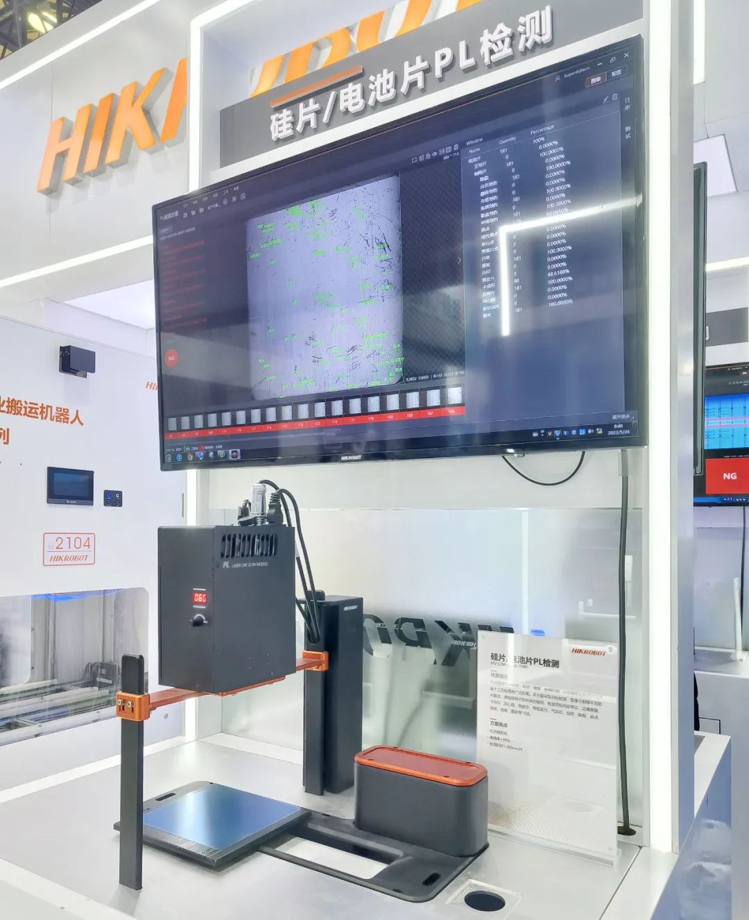 PL检测在电池片的镀膜、印刷、成品的各个工艺阶段应用广泛,海康机器人针对PL视觉硬件架设难、调试复杂的问题,将相机、镜头、激光光源组装整合成标准模块,安装快速、性能稳定,同时结合专业定制的海康深度学习+传统算法,对划伤、隐裂、麻点、黑斑、皮带印、同心圆等35项缺陷完成准确检出和分类,准确率高达99%,在保证准确率的前提下实时检测耗时小于300ms/片。