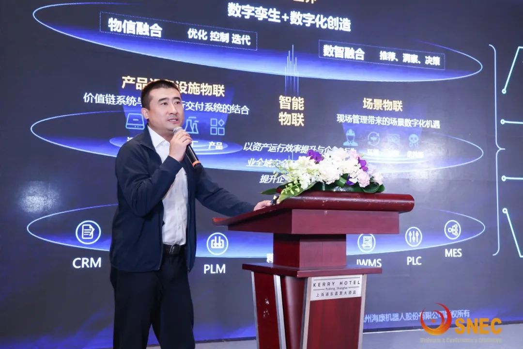 5月24日下午,第十六届全球光伏前沿技术大会在上海浦东嘉里大酒店举行。行业伙伴共聚一堂,就光伏产业如何提质降本,助推智能化发展展开探讨。海康机器人国内营销副总裁蔡化发表了《光伏智造中的AI赋能——移动机器人及机器视觉技术与应用》主题演讲,全面解读了海康机器人覆盖光伏行业全场景工艺的解决方案和产品,以及如何助力企业实现产能和品质的双向奔赴。
