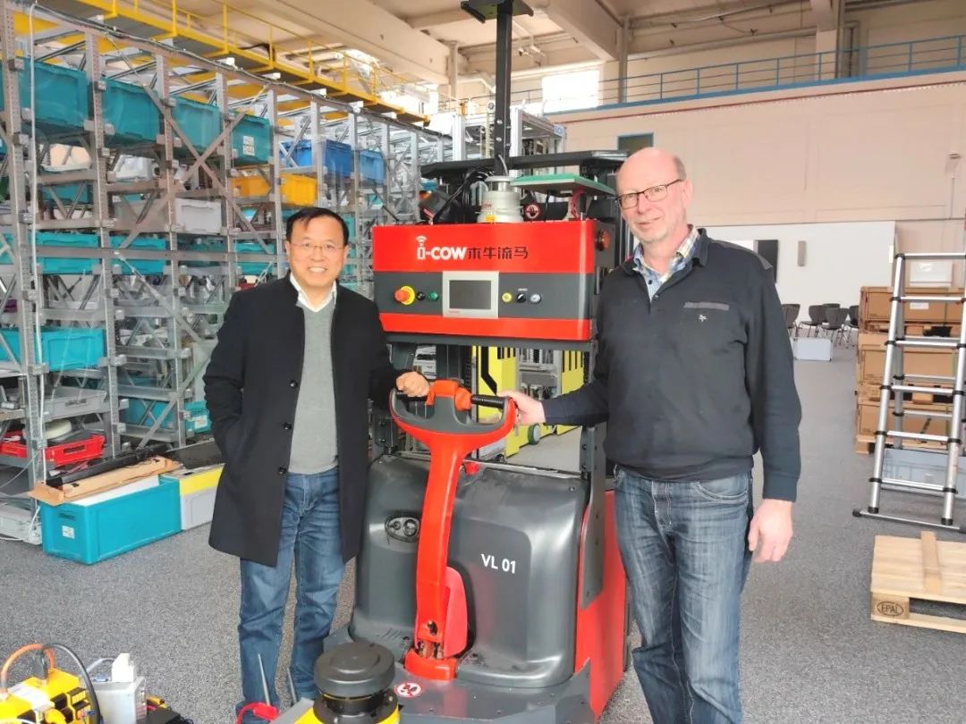 3月,木牛流马研发委员会主任,房殿军教授拜访了德国佛劳恩霍夫物流研究院,与物流研究院专家进行了技术交流,双方就AGV下一代技术发展达成初步合作意向,并邀请物流研究院专家到木牛流马管理总部参观交流。