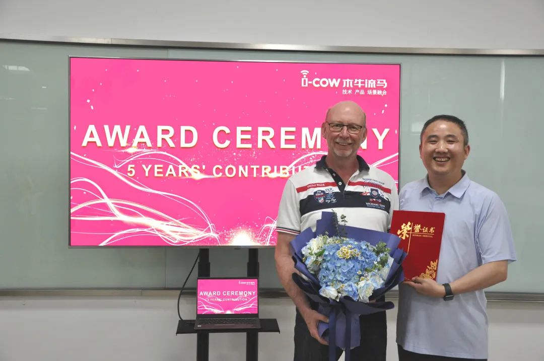 期间,木牛流马向Mr. Thomas Albrecht颁发了“5周年特别贡献奖”,感谢Thomas先生这五年来的支持与帮助,为我司的技术创新与研发工作提供了强有力的指导。在Thomas先生的帮助下,木牛流马在国内率先实现同步欧洲VDA5050标准,并持续推进VDA5050的同步工作。木牛流马已成为在国内实现AGV与AMR的大规模混合调度应用案例落地数量最多,规模最大,效果最优的企业之一,提高了公司的市场竞争力。