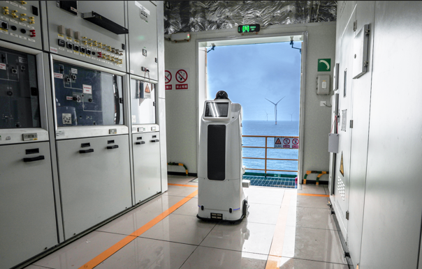 广东沿海某风电升压站上,移动机器人ARIS-MR正在有条不紊地执行设备巡检、实时监控、状态评估等任务,在高温高湿高腐蚀的环境中,ARIS-MR表现出了超强性能,打破了传统人工巡检时间限制,为升压站运维实现降本增效。