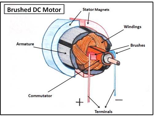 电枢的磁场与转子的磁场相互作用,转子的磁场可以由电机机体上的固定线圈或永磁体产生。当转子转动时,其磁场会反转,因此电机会继续转动,因为线圈产生的磁场会根据外部线圈或永磁体产生的磁场进行切换并被吸引/排斥。