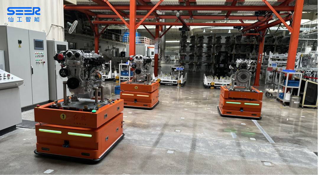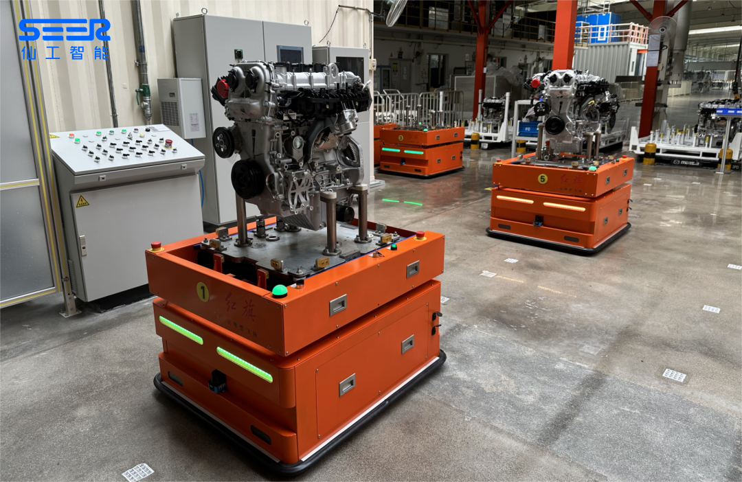 仙工智能入门级移动机器人控制器 SRC-800 成功助力该自动化企业自主制造 AMR,同时借助仙工智能数字化软件 RDS 统一资源调度系统实现所有 AMR 协调作业,高效帮助其完成发动机转运工作,助力厂内物流智能化升级。