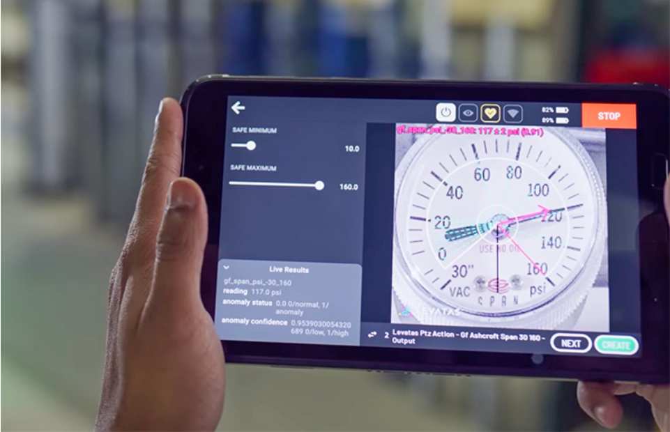 仪表读数也更加紧密地集成在一起,利用 Levatas 的仪表读数软件从可见光相机图像中提取模拟仪表值。这样就可以在仪表超出工作限制时设置警报。