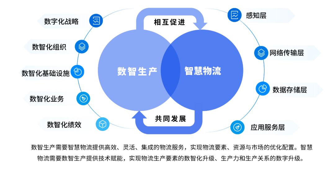 智慧物流与数智化生产密不可分。数智生产制造要求企业具备高效、柔性的智慧物流系统,打通生产过程数据化的全链条。物流系统也需要数智生产来为其提供技术赋能,实现物流生产要素的数字化提升,就必须实现生产力和生产关系的数字化提升,这是一个循序渐进、相辅相成的过程。