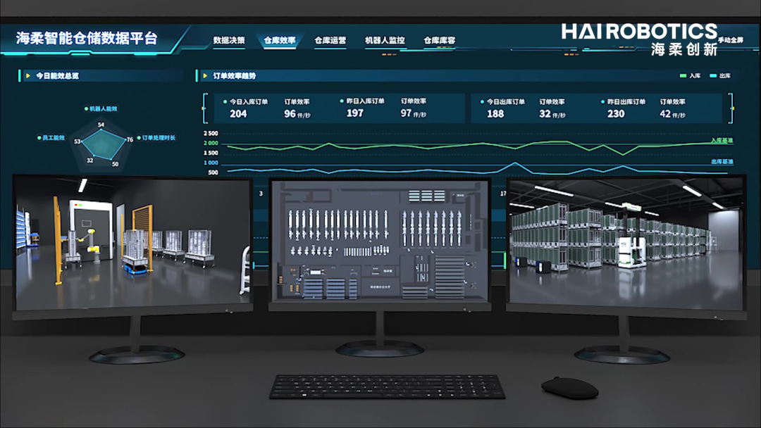 传统模式下,产线的发料、领料通过纸质单据传递,不仅流程繁琐易出错,且容易产生漏料错料的情况。目前,通过海柔HaiQ智慧仓储管理平台接入生产全流程数据,拉通从原材料存储、线边制作、产线搬运、半成品存储、成品出库等全流程的信息,消除仓储与产线之间的信息孤岛,通过数据可视化让客户轻松掌握全盘数据。