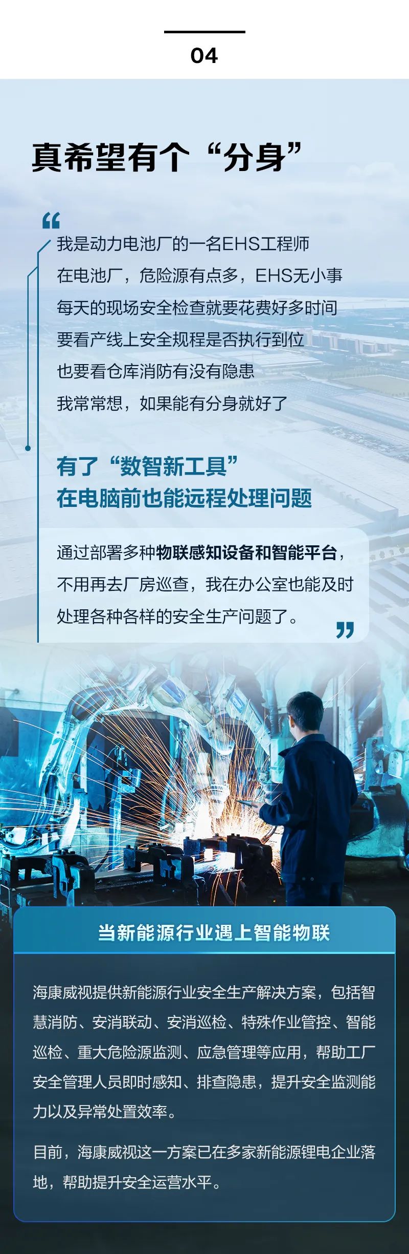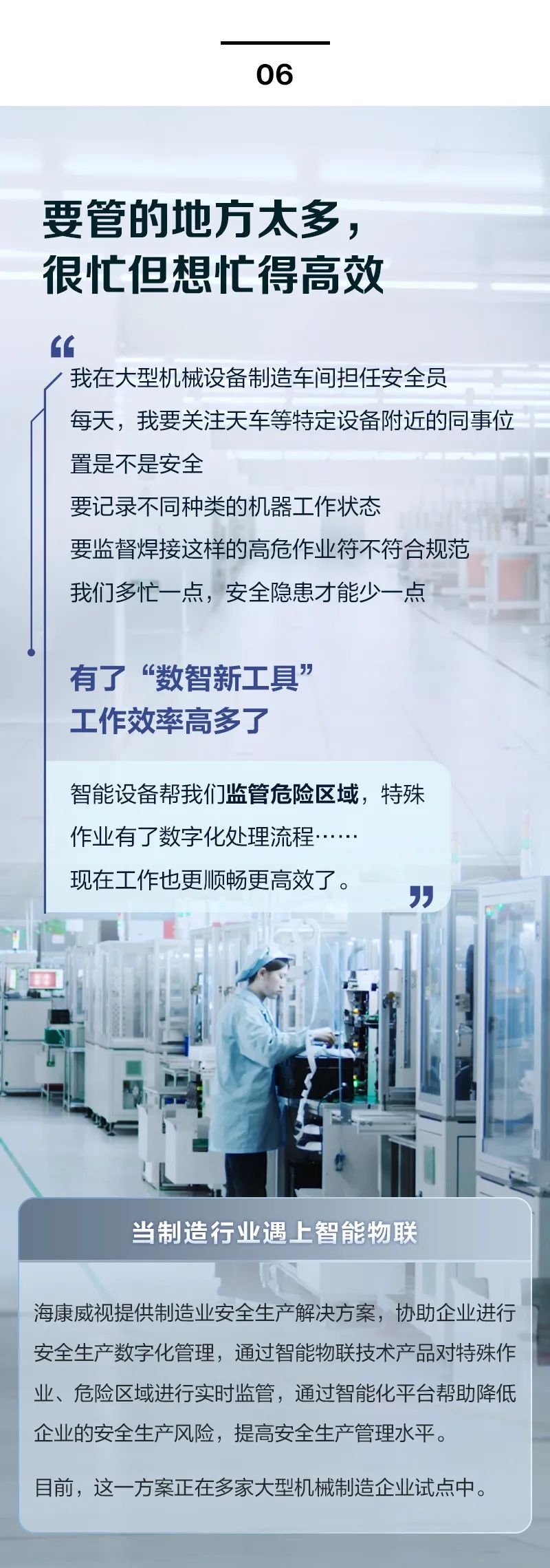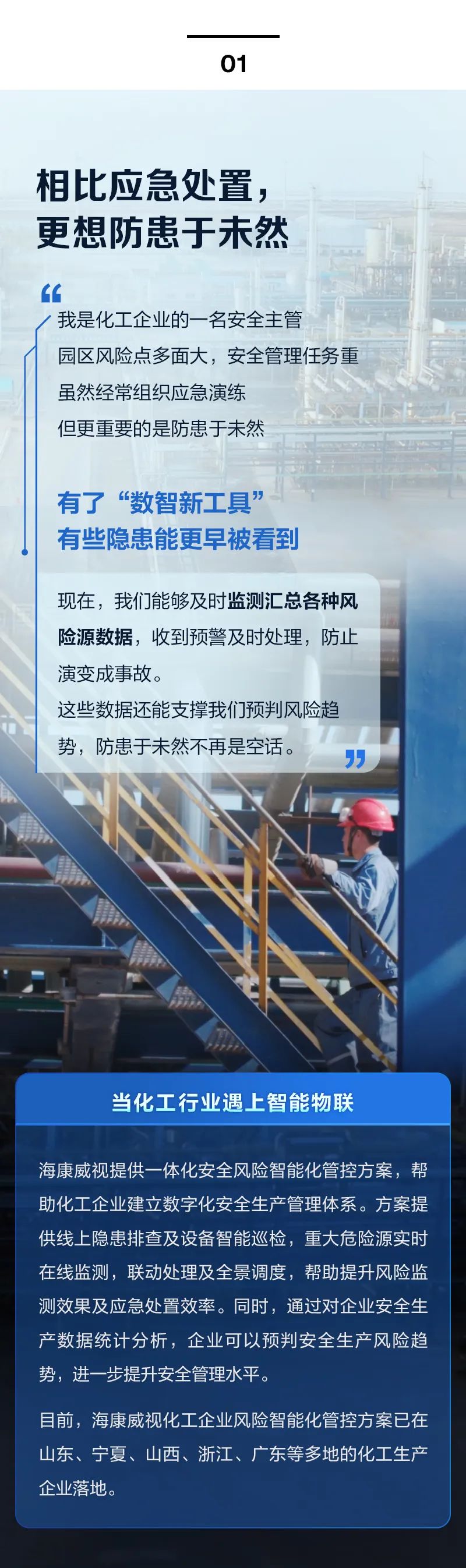 海康威视以智能物联技术,帮助各行各业企业搭建安全生产数字化体系,协助企业构建安全档案、风险分级管控、隐患治理排查、特殊作业管控、危险源管理、安全会议、承包商管理、事故事件管理、应急指挥等10大闭环。