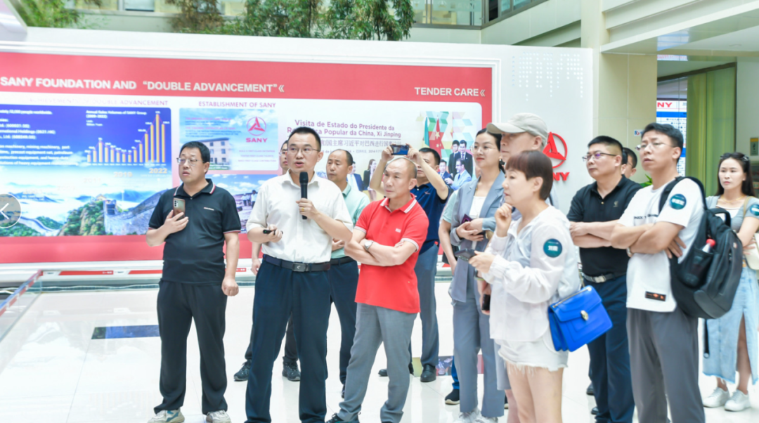三一机器人科技有限公司董事长郭承志先生为来访客户详细介绍三一集团的发展史以及著名事迹,让客户对三一有了更深刻的认识。