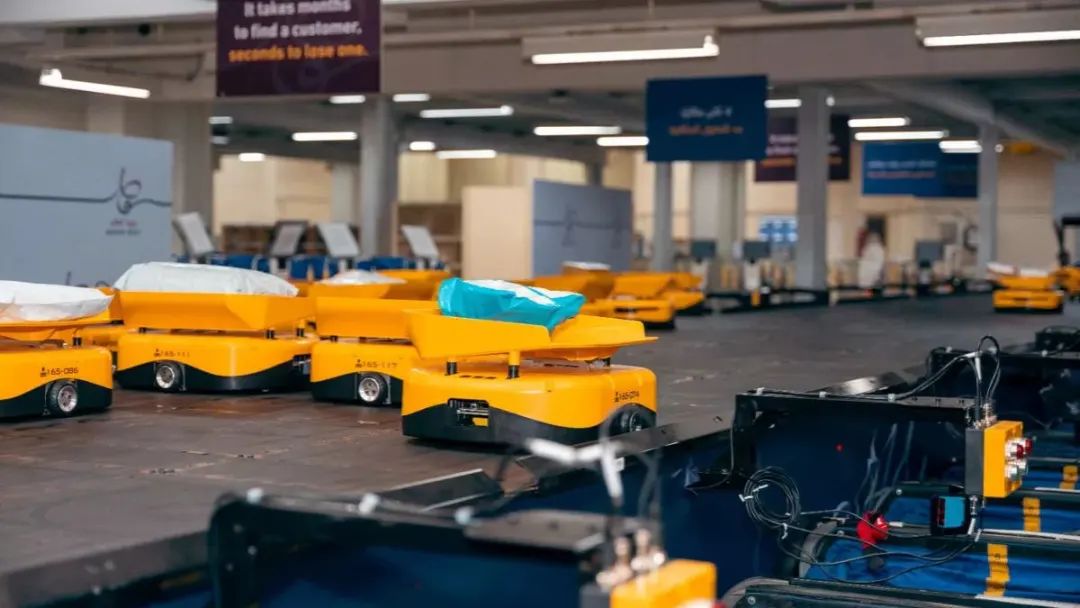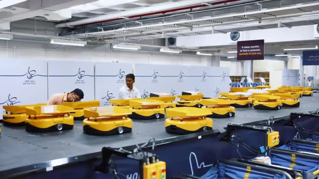 卡塔尔邮政项目共部署了分拣机器人70台,每小时可分拣4500至5000个订单,为卡塔尔邮政全国50多条送货上门路线提供服务,还为分支机构提供配送业务,分拣效率较之前提高了4倍之多。