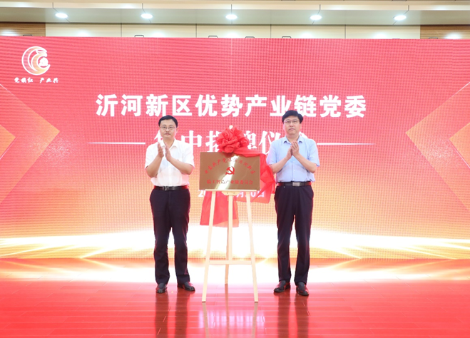 6月30日,沂河新区优势产业链党委集中揭牌仪式在临工举行。临沂市委常委、组织部部长、统战部部长赵纪钢,沂河新区党工委副书记、临沂经济技术开发区管委会主任陈一兵,沂河新区党工委副书记、临沂经济技术开发区服务中心主任、党委书记张伟峰,市委两新组织工委专职副书记吉祥出席仪式。临沂经济技术开发区党工委副书记石少广主持仪式。