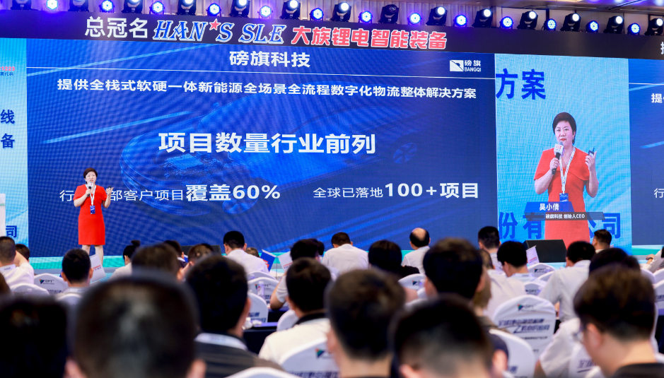 图为磅旗科技CEO吴小倩作主题演讲7月4日下午,磅旗科技CEO吴小倩女士应邀出席峰会现场,与新能源众多头部企业领袖及行业人士汇聚一堂,共话新能源锂电产业发展现状及未来趋势,并发表了题为《磅旗无人工厂物流灯塔战略,如何助力新能源行业极限降本增效?》的主题演讲,向大家分享了磅旗科技无人工厂数字物流灯塔战略解决方案。01无人工厂物流灯塔战略导入,价值凸显
