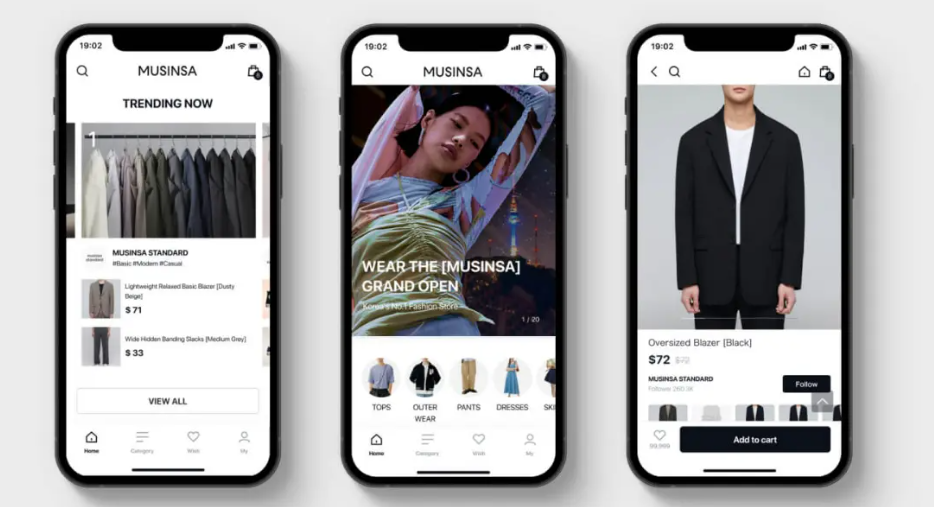 MUSINSA是拥有7000余家入驻品牌、韩国国内会员超1000万人(约人口总数的1/5)、月活跃会员超400万人、年销售额突破115亿元的韩国大型时尚购物平台,同时也是韩国十大市值超过50亿元的独角兽企业之一,以电商服务为主,同时兼营线下门店。