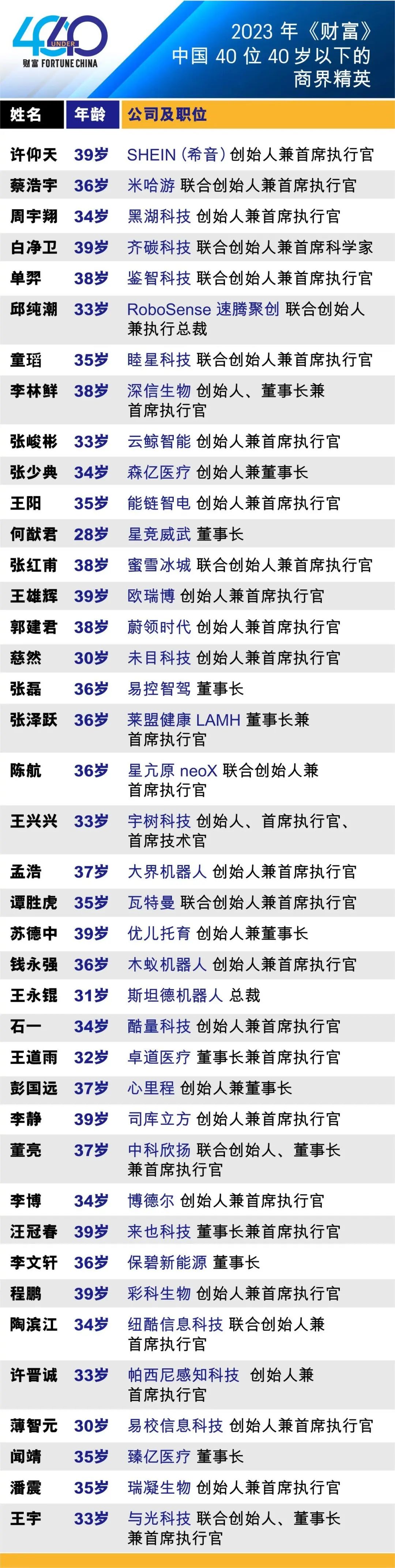 近日,《财富》(中文版)发布“中国40位40岁以下的商界精英”榜单。